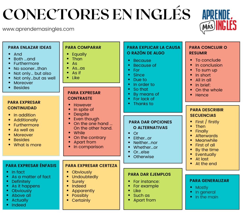 - No. Aunque algunos conectores tengan traducciones similares al español, varían en su grado de formalidad y en las estructuras gramaticales con las que se usan. Aprender estas diferencias es clave para un uso correcto y natural.