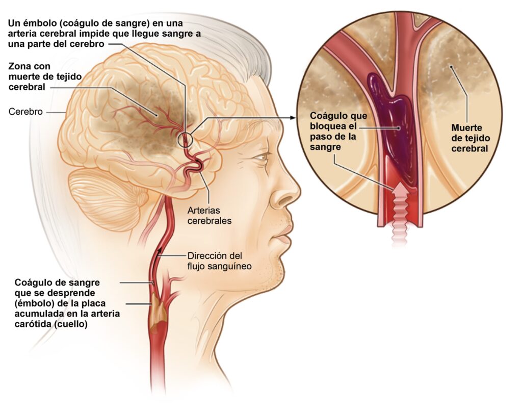 | Causas Comunes | Aterosclerosis, coágulos del corazón (fibrilación auricular) | Presión arterial alta no controlada, aneurismas, MAV |