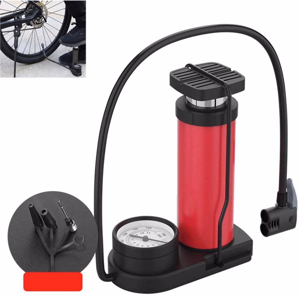 - Infladores de Pié (o de Piso): Son más grandes y estables, diseñados para usar en casa. Tienen una base para el pié, un mango grande y una manguera que facilita la conexión a la válvula. Son mucho más eficientes, inflan más rápido, con menos esfuerzo y, lo más importante, muchos vienen equipados con un manómetro (medidor de presión). El inflador de pié es la opción más recomendada para el inflado regular antes de salir.