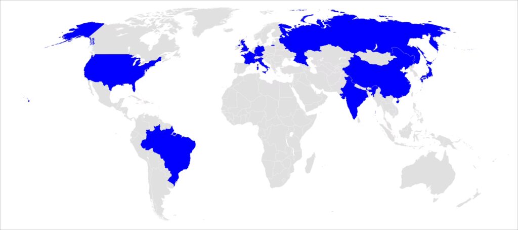 - Mediante Alianzas y Bloques: Lideran o son miembros clave de alianzas militares (OTAN), bloques económicos (G7, G20, BRICS) o acuerdos comerciales que les permiten coordinar políticas y ejercer presión conjunta.