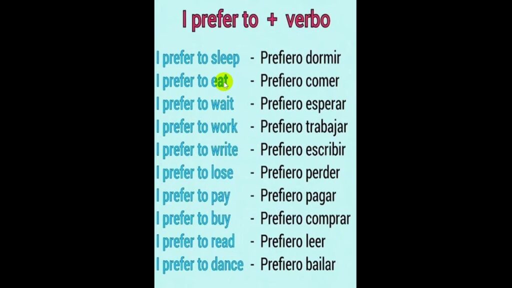 Significado (Español)PreferirPreferiría, PrefieroPreferiría, Prefiero
