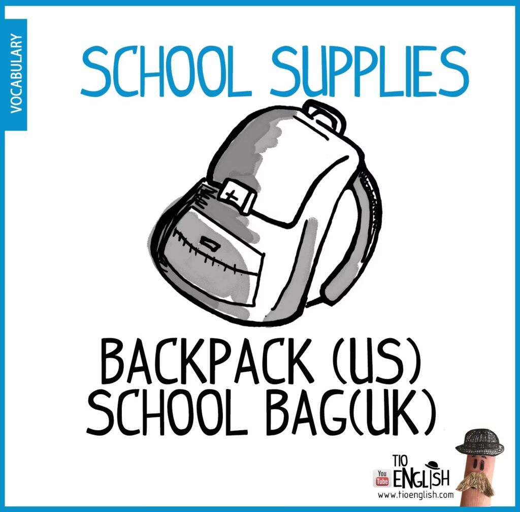 Si bien "schoolbag" es preciso, el término más general y extendido en inglés para referirse a una bolsa que se lleva en la espalda con dos correas es backpack. La palabra "backpack" se ha vuelto tan popular que a menudo se usa indistintamente para cualquier tipo de bolsa de este diseño, ya sea para la escuela, para viajar, para hacer senderismo o para el uso diario. Es, por así decirlo, el término paraguas que engloba la "schoolbag" escolar.